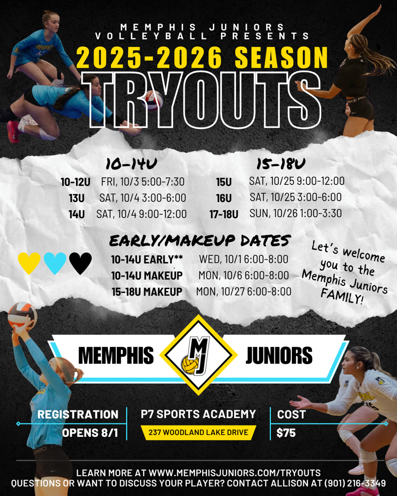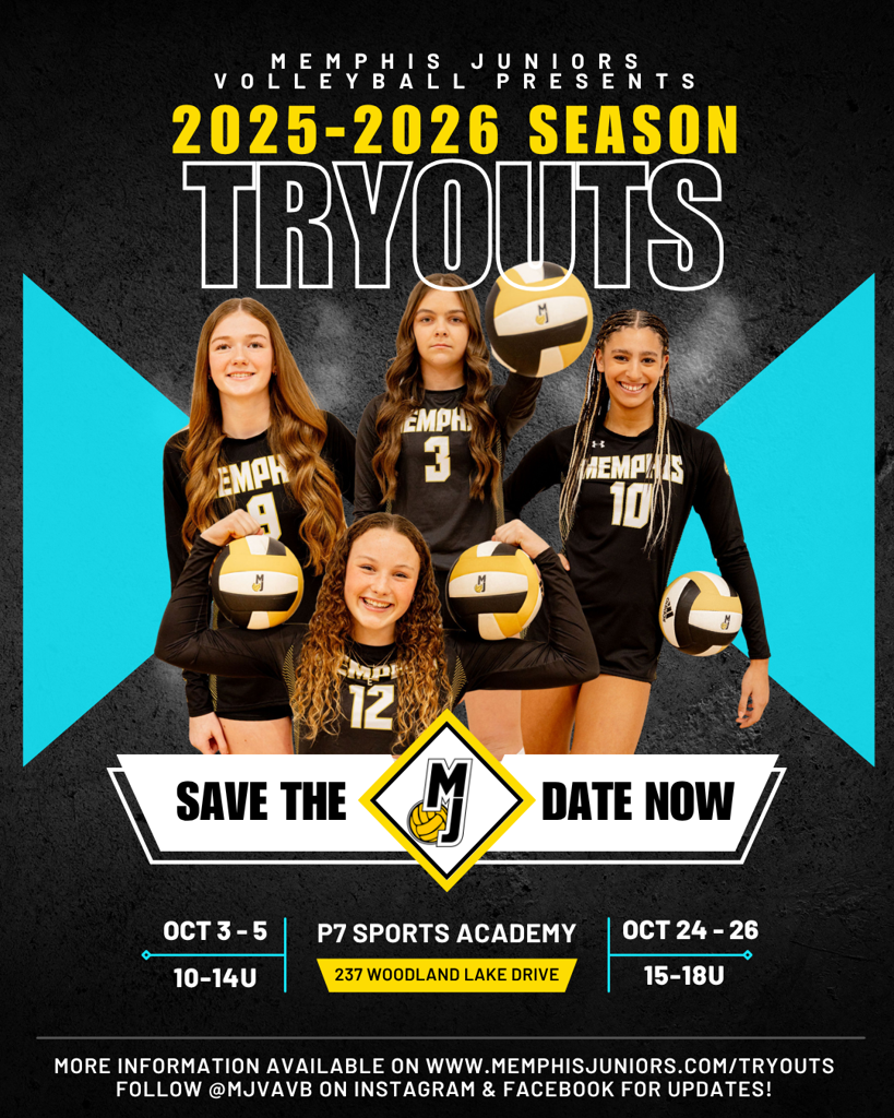 Now announcing the 2025-2026 Memphis Juniors Tryout Dates! Our coaches look forward to seeing you in our incredible facility in October!