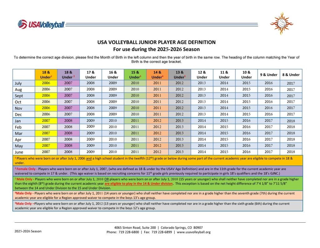 USAV has updated their age policy for play. The cut-off is now July 1 (previously September 1). Please check to see what age you should be trying out for.